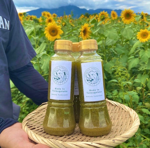 山梨県北杜市のファーマン井上農場にて有機栽培された大葉、ニンニクを使用。こちらはご好評につき完売となっております。
